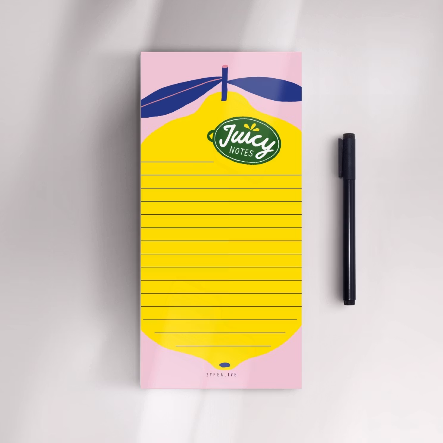 Den klargula citronen mot den rosa bakgrunden – toppad med de där kaxiga bladen – ser till att dina anteckningar inte försvinner i mängden. Perfekt för att planera nästa stora grej, skissa på ett projekt eller bara för att påminna dig själv om att du är rätt grym, även när vardagen känns lite besk. Surt sa räven? Inte med det här blocket i handen.