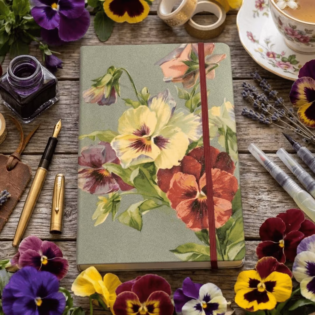 Tankens Kraft och Omtanke. Pensén, vars namn bokstavligen betyder 'tanke', är den perfekta följeslagaren för dina innersta reflektioner. Den mjuka, nästan drömska illustrationen ger en känsla av lugn och en nostalgisk, vintage-inspirerad skönhet. Den här boken är skräddarsydd för Personlig Dagbok, Poesi eller som en Tacksamhetslogg där du kan odla dina dagliga intryck.