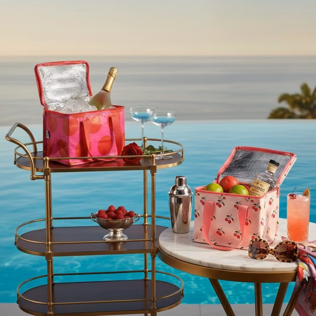 🍒 Kylväska Cherry: Den här kylväskan är till för dig som vägrar ha en tråkig väska. Den rymmer lagom för "egentid" på balkongen eller stranden.