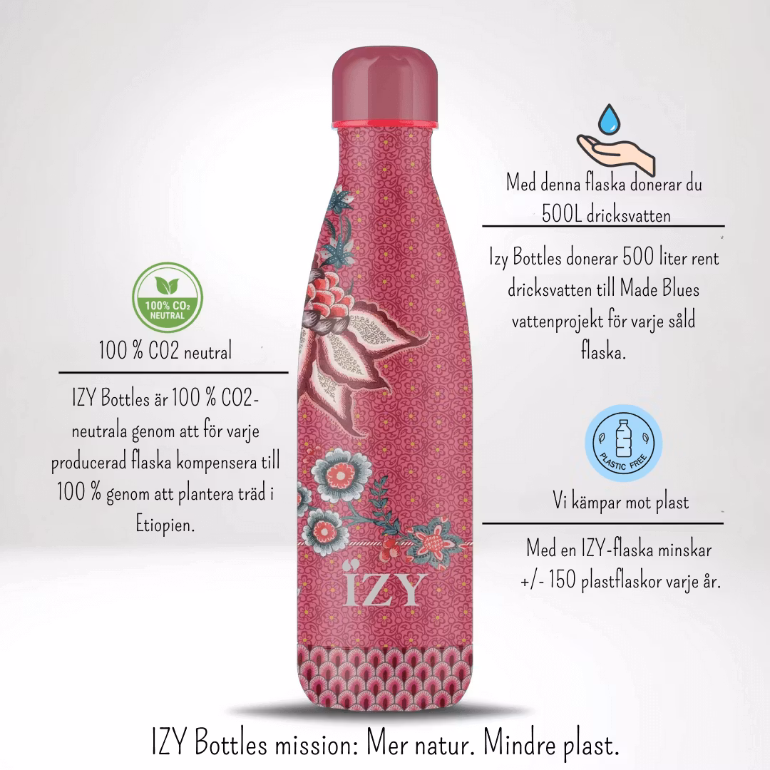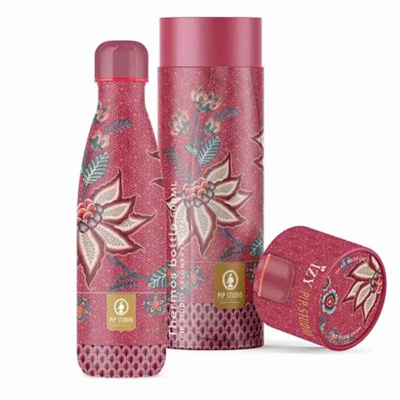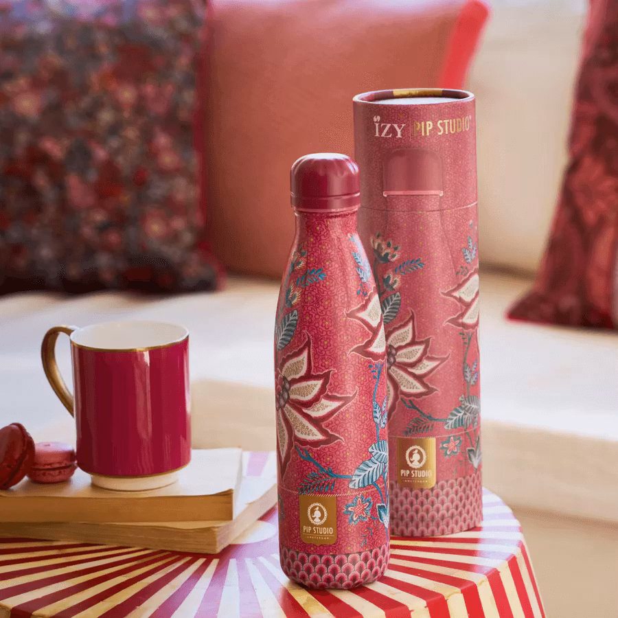 Möt samarbetet som tar din vätskekontroll till en helt ny nivå. Pip Studios ikoniska mönster "Flower Festival" möter IZY Bottles kompromisslösa kvalitet. Den mörkrosa designen är både sofistikerad och elegant – en accessoar som drar blickarna till sig oavsett om du är på gymmet, kontoret eller på en lyxig picknick.