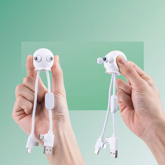 Har du också fingrar som aldrig kan vara stilla? Möt din nya skrivbordskompis. Det här är inte bara en laddkabel, det är din personliga lilla terapeut. När tekniken strular eller mötet drar över tiden – tryck på gubbens huvud och se ögonen ploppa ut. Det är faktiskt omöjligt att vara arg när man håller i den här.