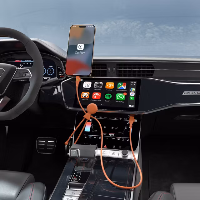 Mr Bio orange: 3-i-1 laddkabel med snabbladdning & CarPlay. Sluta ha 3% batteripanik! ⚡